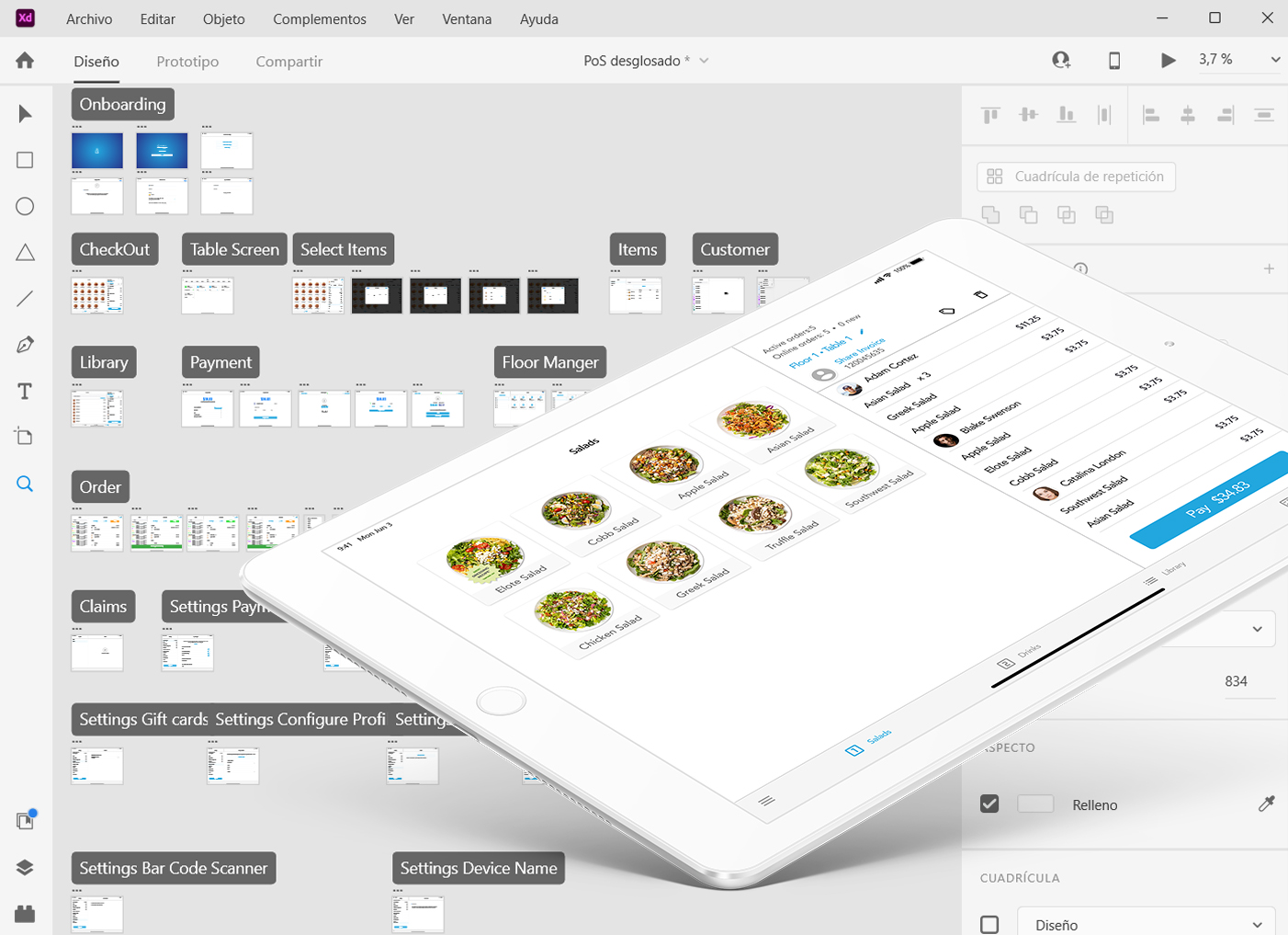 Wireframes de alta fidelidad creados en Adobe XD